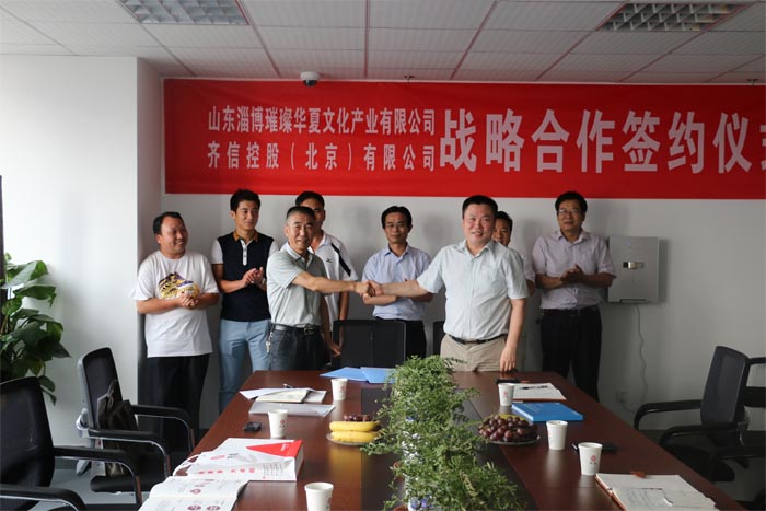2014年6月27日,山東淄博璀璨華夏文化產(chǎn)業(yè)有限公司控股方代表成晟等一行三人來到我公司參觀交流,之后雙方簽署了《戰(zhàn)略合作協(xié)議》,正式建立全面戰(zhàn)略合作伙伴關(guān)系。