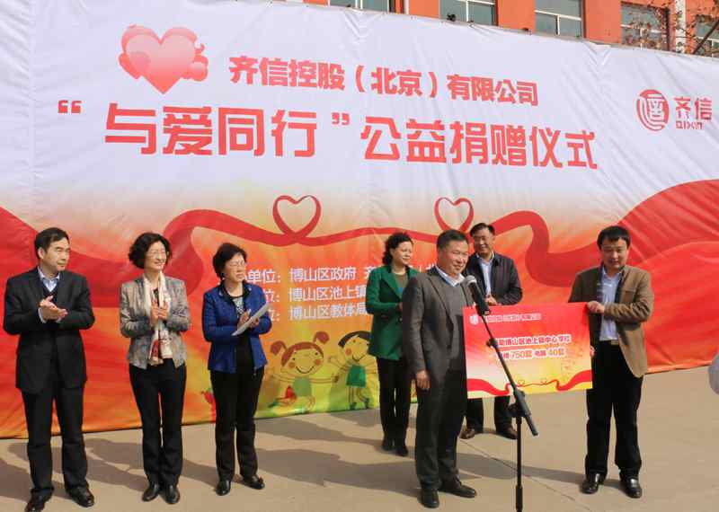 為進一步關(guān)注貧困山區(qū)兒童教育,整合政府和社會資源,有效幫扶山區(qū)的小學(xué)教育,保障兒童平安幸福。3月4日,齊信控股(北京)有限公司聯(lián)合博山區(qū)政府,在池上鎮(zhèn)中心小學(xué)舉行“與愛同行”愛心公益活動。市、區(qū)、鎮(zhèn)相關(guān)負責(zé)人了出席儀式。此次捐贈活動共為該校捐贈課桌凳750套,計算機40套,齊信員工與10名家庭困難、品學(xué)兼優(yōu)的學(xué)生結(jié)成了對子,資助孩子每人每年1000元,以幫助他們更好的完成學(xué)業(yè)。