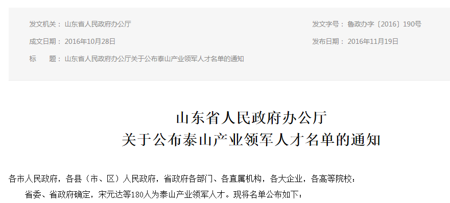 9. 10月底,經(jīng)過組織動員、初步評選、專家評審、現(xiàn)場考察、公示公告等嚴格程序,公司申報投資建設項目綜合服務產(chǎn)業(yè)鏈項目成功入選“2016年度泰山產(chǎn)業(yè)領軍人才工程”,董事長郭培勛入選“泰山產(chǎn)業(yè)領軍人才”。